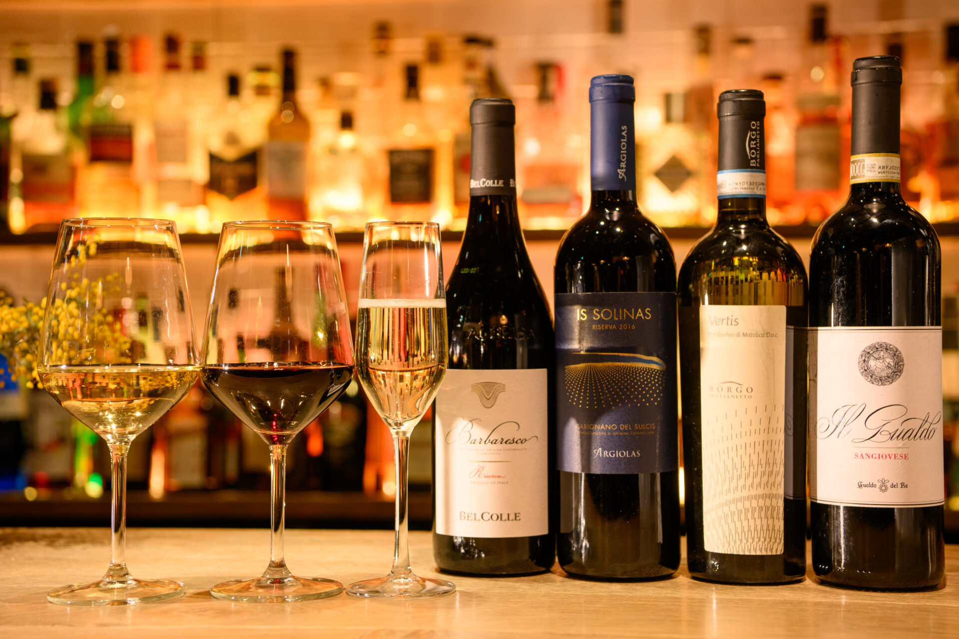 グラスワインはもちろん、ボトルワインも豊富に取り揃えています。